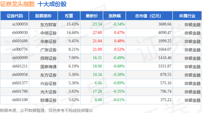 证券之星消息,11月26日,证券龙头(399437)指数报收于6574.6点,跌0.17%,成交144.45亿元,换手率0.51%。当日该指数成份股中,上涨的有5家,红塔证券以1.18%的涨幅领涨,下跌的有20家,兴业证券以0.89%的跌幅领跌。