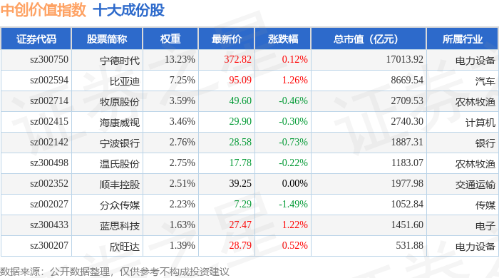 中创价值(399627)指数十大成份股详情如下: