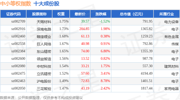 中小等权(399634)指数十大成份股详情如下: