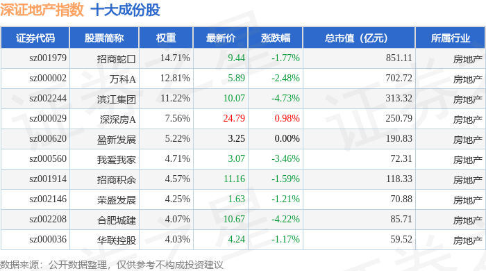 深证地产(399637)指数十大成份股详情如下: