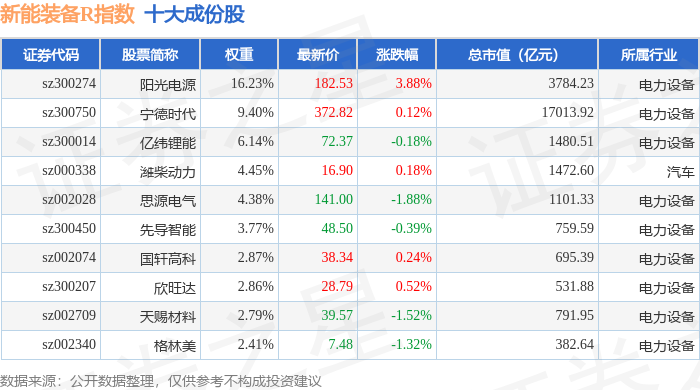 新能装备R(470043)指数十大成份股详情如下: