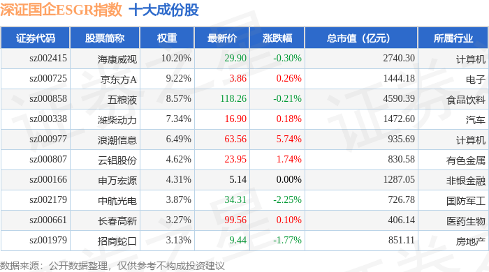 深证国企ESGR(470055)指数十大成份股详情如下: