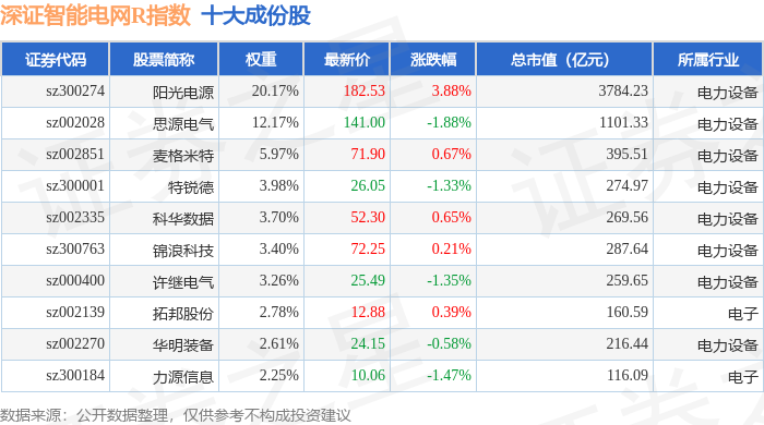 证券之星消息,11月26日,深证智能电网R(470054)指数报收于4153.4点,涨0.07%,成交317.06亿元,换手率2.81%。当日该指数成份股中,上涨的有11家,电科院以7.77%的涨幅领涨,下跌的有39家,双杰电气以5.97%的跌幅领跌。