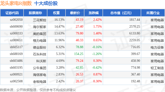 资金流向方面,龙头家电R(480028)指数成份股当日主力资金净流入合计7.7亿元,游资资金净流出合计4.11亿元,散户资金净流出合计3.59亿元。成份股资金流向详情见下表: