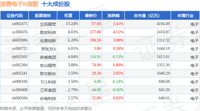 消费电子R(480030)指数十大成份股详情如下: