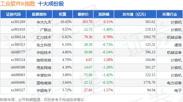 证券之星消息,11月26日,工业软件R(480034)指数报收于3423.41点,跌0.3%,成交210.2亿元,换手率2.28%。当日该指数成份股中,上涨的有14家,思维列控以5.67%的涨幅领涨,下跌的有36家,海目星以4.85%的跌幅领跌。