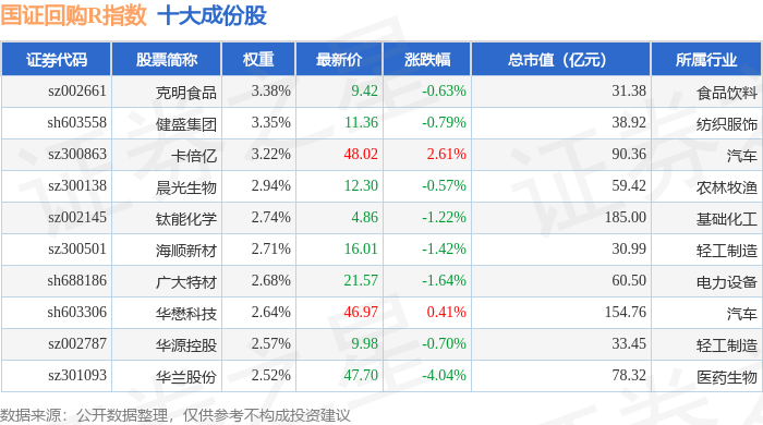 国证回购R(480063)指数十大成份股详情如下: