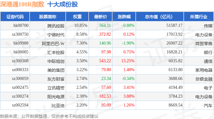 深港通100R(483007)指数十大成份股详情如下: