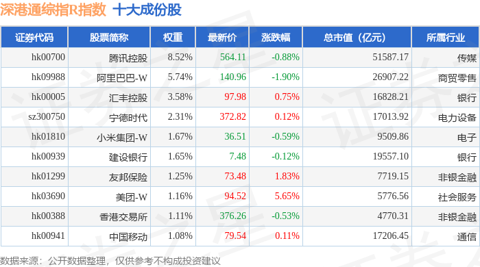近10日内深港通综指R(483005)指数成份股做了调整,新纳入了5只股票,剔除了1只股票。