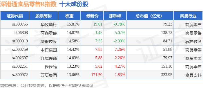 深港通食品零售R(483037)指数十大成份股详情如下: