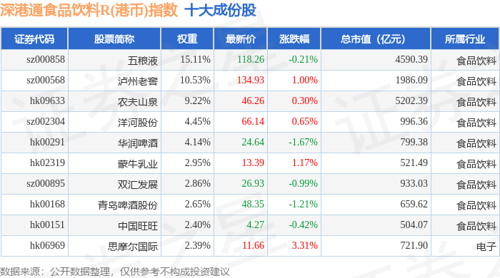 深港通食品饮料R(港币)(483066)指数十大成份股详情如下: