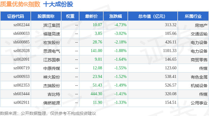 质量优势R(489017)指数十大成份股详情如下: