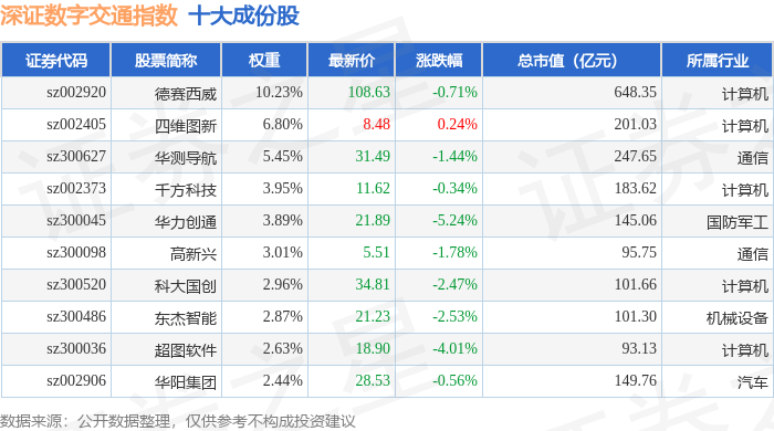 深证数字交通(970049)指数十大成份股详情如下: