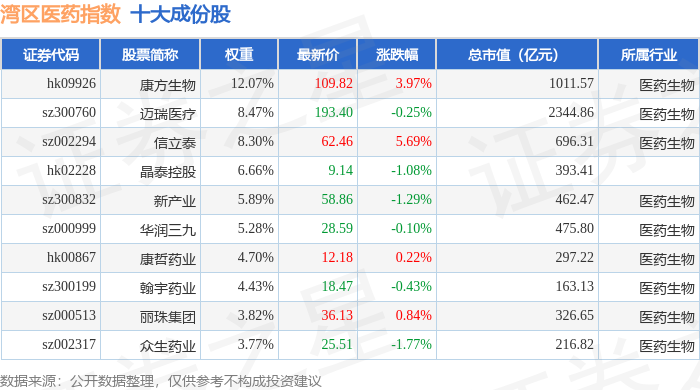 资金流向方面,湾区医药(980013)指数成份股当日主力资金净流出合计5.58亿元,游资资金净流入合计7800.94万元,散户资金净流入合计4.8亿元。成份股资金流向详情见下表: