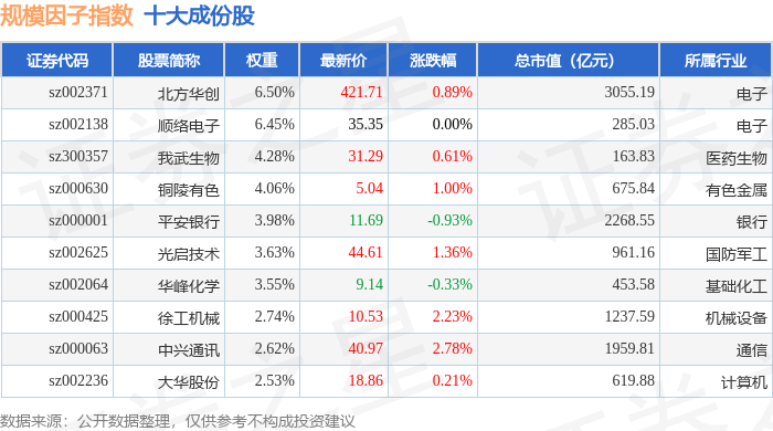 资金流向方面,规模因子(980055)指数成份股当日主力资金净流入合计7.65亿元,游资资金净流出合计10.26亿元,散户资金净流入合计2.6亿元。成份股资金流向详情见下表: