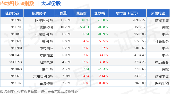 证券之星消息,11月26日,内地科技50(983003)指数报收于2981.04点,涨0.48%,成交1133.49亿元,换手率0.97%。当日该指数成份股中,上涨的有28家,浪潮信息以5.74%的涨幅领涨,下跌的有21家,快手-W以2.83%的跌幅领跌。