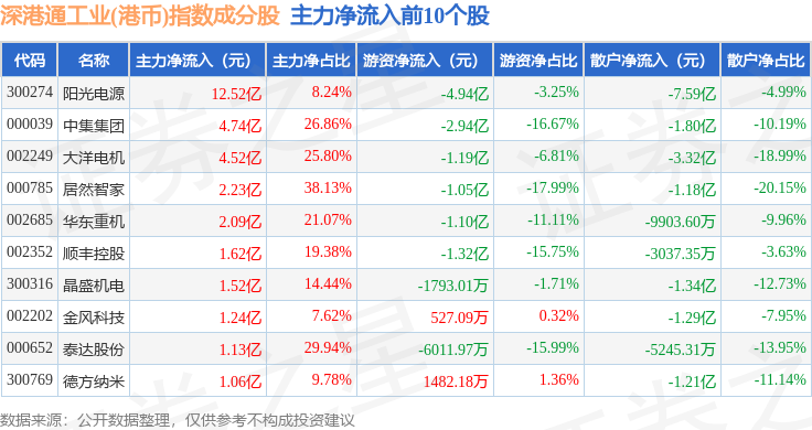 资金流向方面,深港通工业(港币)(983018)指数成份股当日主力资金净流出合计31.53亿元,游资资金净流出合计1.43亿元,散户资金净流入合计32.96亿元。成份股资金流向详情见下表: