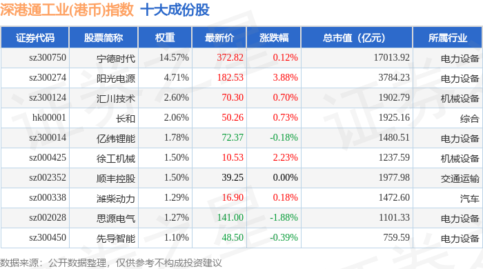 深港通工业(港币)(983018)指数十大成份股详情如下: