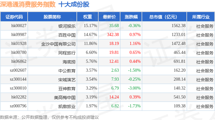 深港通消费服务(983045)指数十大成份股详情如下: