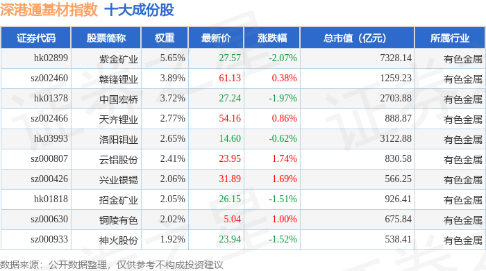 证券之星消息,11月26日,深港通基材(983061)指数报收于6859.52点,跌0.5%,成交675.69亿元,换手率1.4%。当日该指数成份股中,上涨的有49家,玖龙纸业以5.0%的涨幅领涨,下跌的有83家,平潭发展以5.94%的跌幅领跌。