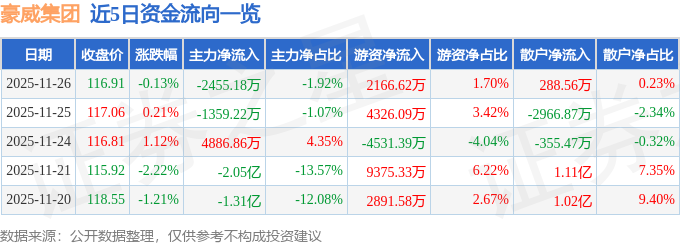 11月26日的资金流向数据方面,主力资金净流出2455.18万元,占总成交额1.92%,游资资金净流入2166.62万元,占总成交额1.7%,散户资金净流入288.56万元,占总成交额0.23%。