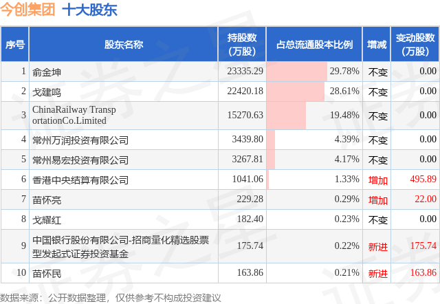 根据今创集团2025年三季报公布的十大股东详情如下: