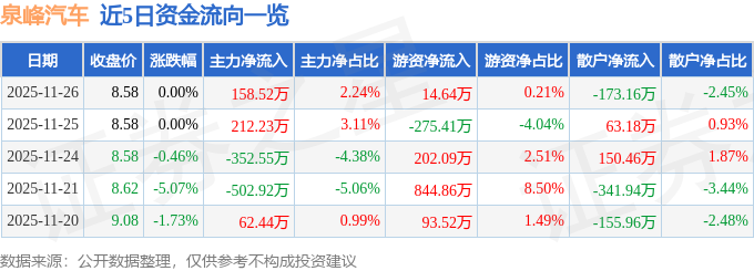 11月26日的资金流向数据方面,主力资金净流入158.52万元,占总成交额2.24%,游资资金净流入14.64万元,占总成交额0.21%,散户资金净流出173.16万元,占总成交额2.45%。