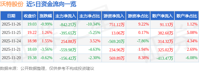 证券之星消息,截至2025年11月26日收盘,沃特股份(002886)报收于19.03元,下跌0.99%,换手率2.03%,成交量4.24万手,成交额8145.82万元。