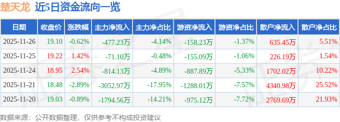 11月26日的资金流向数据方面,主力资金净流出477.23万元,占总成交额4.14%,游资资金净流出158.23万元,占总成交额1.37%,散户资金净流入635.45万元,占总成交额5.51%。