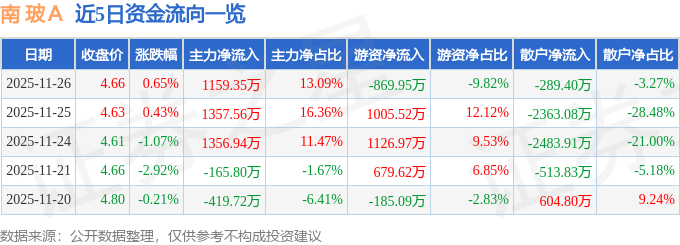 证券之星消息,截至2025年11月26日收盘,南 玻A(000012)报收于4.66元,上涨0.65%,换手率0.97%,成交量18.98万手,成交额8854.86万元。