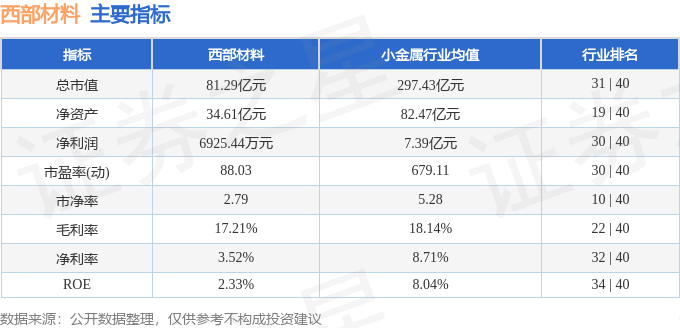 西部材料2025年三季报显示,前三季度公司主营收入22.83亿元,同比上升2.82%;归母净利润6925.44万元,同比下降49.76%;扣非净利润4896.43万元,同比下降50.8%;其中2025年第三季度,公司单季度主营收入7.44亿元,同比上升10.07%;单季度归母净利润808.98万元,同比下降80.85%;单季度扣非净利润100.04万元,同比下降93.27%;负债率52.32%,投资收益2038.26万元,财务费用2424.45万元,毛利率17.21%。西部材料(002149)主营业务:稀有金属复合材料及制品、金属纤维及制品、难熔金属制品、贵金属制品的开发、生产和销售业务。