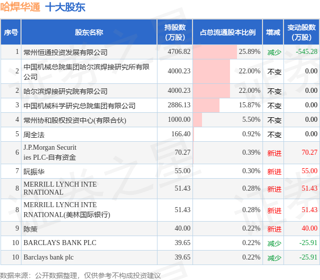 根据哈焊华通2025年三季报公布的十大股东详情如下:
