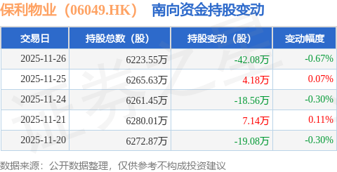 证券之星消息,11月26日南向资金减持42.08万股保利物业(06049.HK)。近5个交易日中,获南向资金减持的有3天,累计净减持68.4万股。近20个交易日中,获南向资金减持的有17天,累计净减持248.86万股。截至目前,南向资金持有保利物业(06049.HK)6223.55万股,占公司已发行普通股的17.93%。