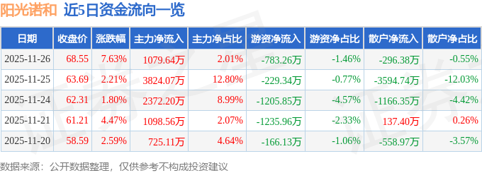 证券之星消息,截至2025年11月26日收盘,阳光诺和(688621)报收于68.55元,上涨7.63%,换手率7.03%,成交量7.88万手,成交额5.37亿元。