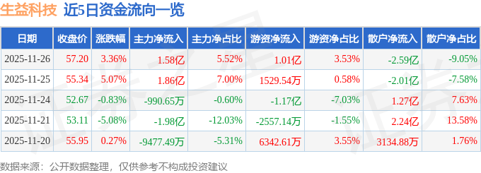 11月26日的资金流向数据方面,主力资金净流入1.58亿元,占总成交额5.52%,游资资金净流入1.01亿元,占总成交额3.53%,散户资金净流出2.59亿元,占总成交额9.05%。