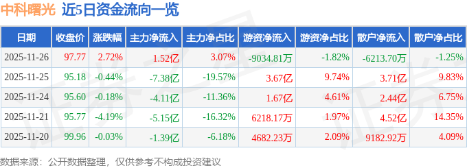 11月26日的资金流向数据方面,主力资金净流入1.52亿元,占总成交额3.07%,游资资金净流出9034.81万元,占总成交额1.82%,散户资金净流出6213.7万元,占总成交额1.25%。