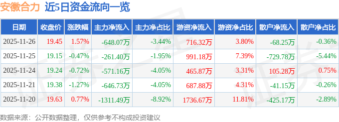 证券之星消息,截至2025年11月26日收盘,安徽合力(600761)报收于19.45元,上涨1.57%,换手率1.09%,成交量9.67万手,成交额1.88亿元。