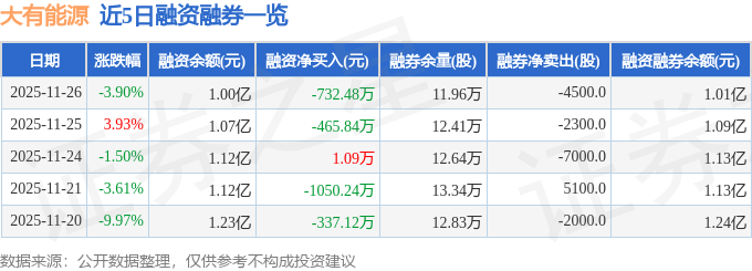 证券之星消息,截至2025年11月26日收盘,大有能源(600403)报收于7.88元,下跌3.9%,换手率2.51%,成交量60.12万手,成交额4.77亿元。