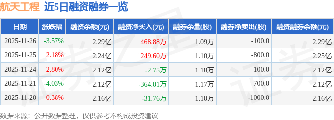 航天工程融资融券信息显示,融资方面,当日融资买入2019.03万元,融资偿还1550.15万元,融资净买入468.88万元。融券方面,融券卖出400.0股,融券偿还500.0股,融券余量1.09万股,融券余额19.73万元。融资融券余额2.29亿元。