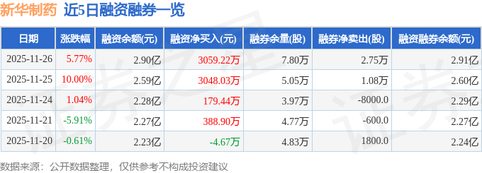 新华制药融资融券信息显示,融资方面,当日融资买入1.54亿元,融资偿还1.24亿元,融资净买入3059.22万元,连续3日净买入累计6286.69万元。融券方面,融券卖出3.02万股,融券偿还2700.0股,融券余量7.8万股,融券余额141.57万元。融资融券余额2.91亿元。
