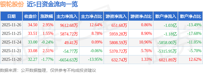 11月26日的资金流向数据方面,主力资金净流入9612.68万元,占总成交额12.64%,游资资金净流入651.68万元,占总成交额0.86%,散户资金净流出1.03亿元,占总成交额13.49%。