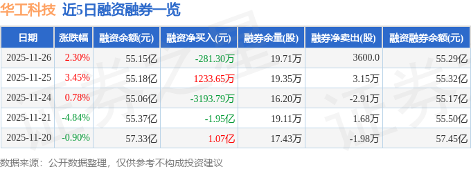 华工科技融资融券信息显示,融资方面,当日融资买入5.44亿元,融资偿还5.47亿元,融资净偿还281.3万元。融券方面,融券卖出3.58万股,融券偿还3.22万股,融券余量19.71万股,融券余额1427.0万元。融资融券余额55.29亿元。