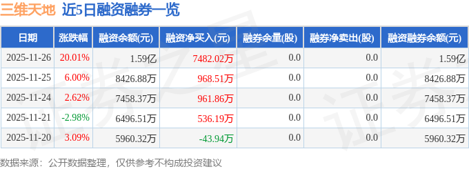 证券之星消息,截至2025年11月26日收盘,三维天地(301159)报收于47.26元,上涨20.01%,涨停,换手率15.66%,成交量8.3万手,成交额3.77亿元。