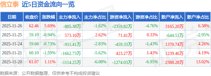 证券之星消息,截至2025年11月26日收盘,信立泰(002294)报收于62.46元,上涨5.69%,换手率0.72%,成交量8.0万手,成交额4.96亿元。