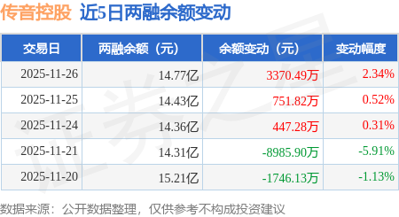 证券之星消息,11月26日,传音控股(688036)融资买入1.18亿元,融资偿还8438.38万元,融资净买入3408.29万元,融资余额14.75亿元,近3个交易日已连续净买入累计4594.54万元。