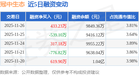 证券之星消息,11月26日,冠中生态(300948)融资买入1087.77万元,融资偿还654.54万元,融资净买入433.23万元,融资余额9849.36万元,近20个交易日中有13个交易日出现融资净买入。