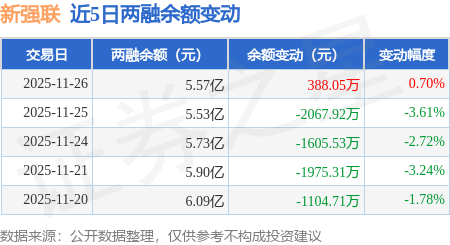 证券之星消息,11月26日,新强联(300850)融资买入5093.64万元,融资偿还4743.02万元,融资净买入350.62万元,融资余额5.54亿元。