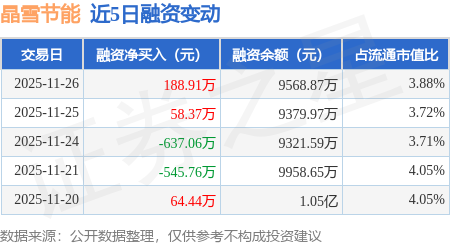 证券之星消息,11月26日,晶雪节能(301010)融资买入993.55万元,融资偿还804.64万元,融资净买入188.91万元,融资余额9568.87万元。