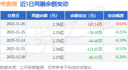证券之星消息,11月26日,帝奥微(688381)融资买入1453.31万元,融资偿还1310.19万元,融资净买入143.12万元,融资余额2.36亿元。