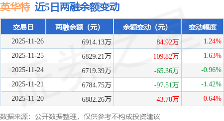 证券之星消息,11月26日,英华特(301272)融资买入393.67万元,融资偿还308.75万元,融资净买入84.92万元,融资余额6914.13万元,近20个交易日中有13个交易日出现融资净买入。